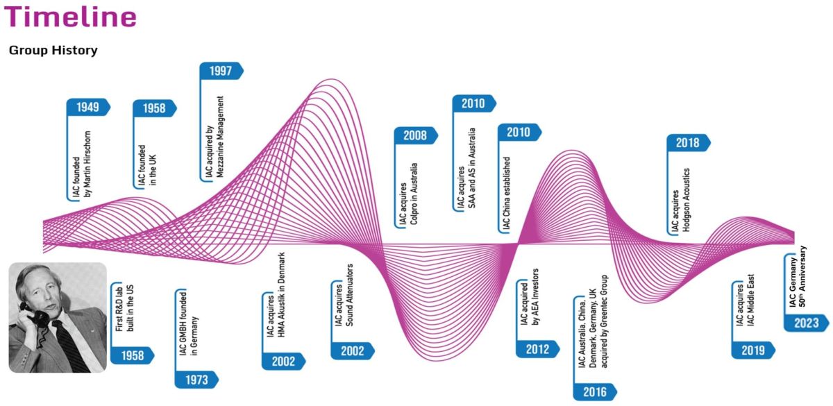 Dank maßgeschneiderter Lösungen zur Reduzierung unerwünschten Lärms und zur Verbesserung der Akustik in Schallmessräumen hat sich IAC zum führenden Hersteller von Schallschutzprodukten und -systemen entwickelt. Als Hirschorn das Unternehmen 1998 nach seinem Rückzug in den Ruhestand verkaufte, stand internationales Wachstum im Fokus. Lärmbelästigung ist kein regionales Problem, sondern betrifft Menschen weltweit. Mit dem Ausbau bestehender und der Errichtung weiterer Büros und Produktionsstätten in den USA, Großbritannien und Deutschland, hat IAC die internationale Präsenz gestärkt und neue Märkte erschlossen. Der deutsche Hauptsitz befindet sich nun in Mönchengladbach (NRW).